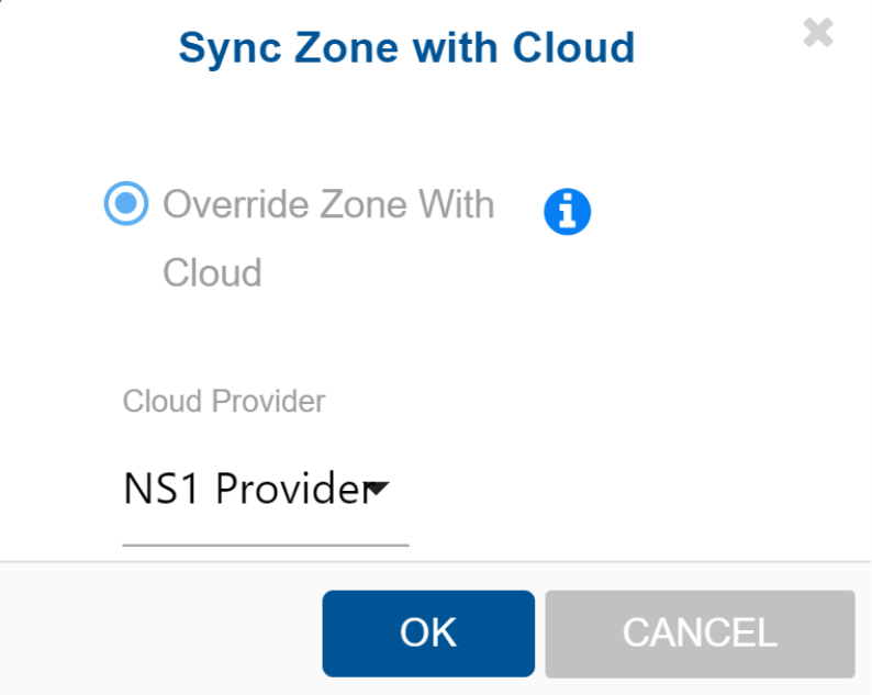 Click OK. The system associates the NS1 Cloud Provider with the created zone template and displays it in the DNS Zone Templates grid.