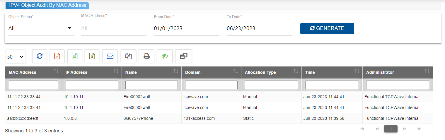 IPv4 Object Audit By MAC Address